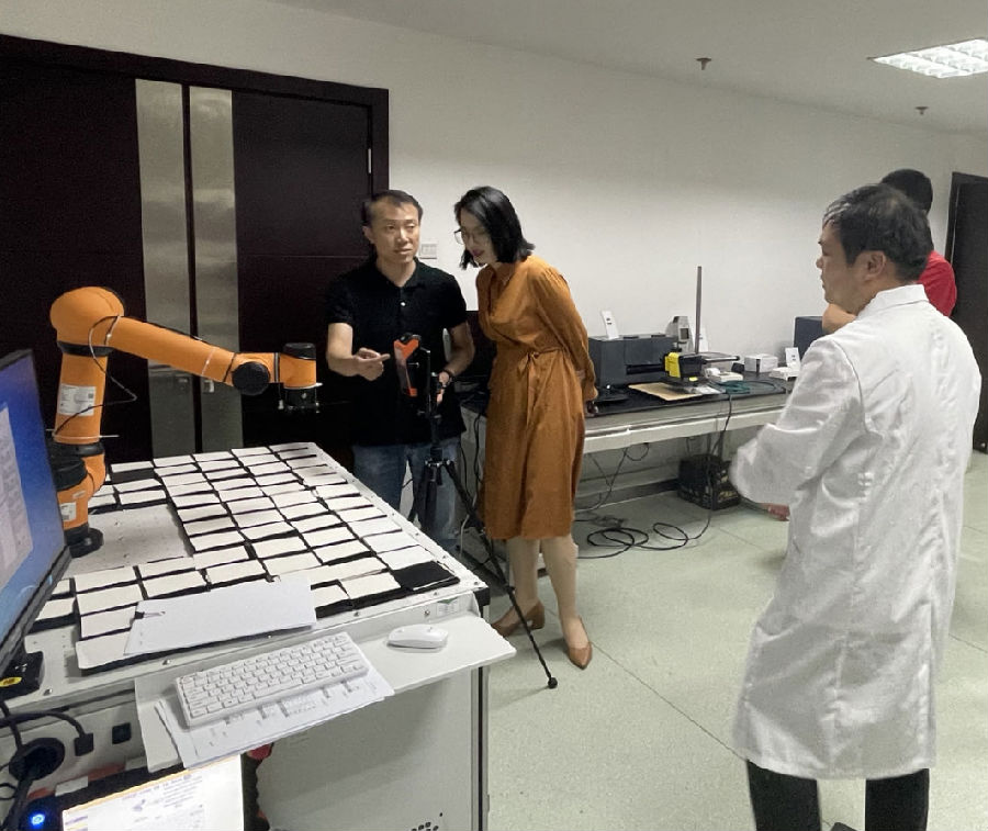 座谈会上,黄芳首先介绍了新大陆公司的发展历程和主营业务。随后郭峰介绍了公司在科研技术方面的优势和成果,并展示了最新研发设备和应用领域。黄芳表示通过参观和座谈对中心的业务有了更多的认识,希望可以和中心与协会进行更深层次的交流与合作。