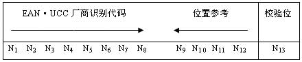 公司前缀是由EAN 编码组织分配给EAN系统用户的。位置参考号由系统用户分配,遵守先前分配公司前缀的编码组织制定的规则。校验位是根据一个标准算法计算出来的。