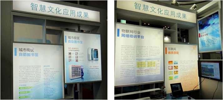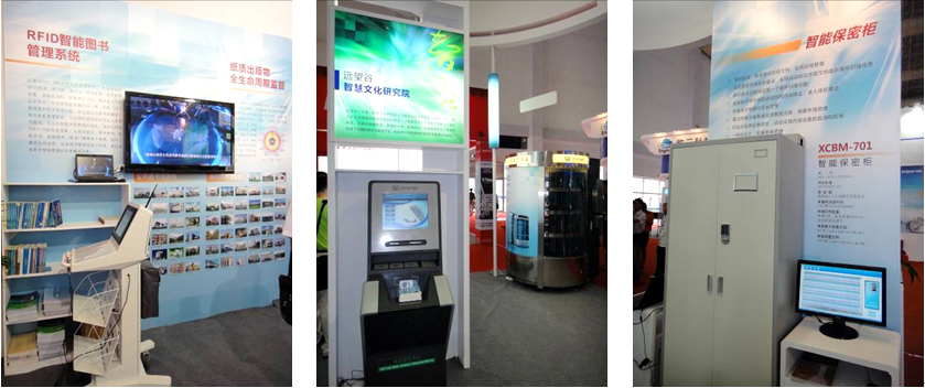 在远望谷展台的智慧文化应用成果展区,展出了RFID智能图书管理系统、互联网教育游戏、物联网行业网络培训平台、纸制出版物全生命周期监管、智能景区等成功应用。远望谷在智慧文化领域的应用研究和产品开发起步较早,取得了一定的成就,远望谷RFID智能图书管理系统现应用于全国近百家公共和高校图书馆,24小时城市街区自助图书馆在广州、深圳等地陆续投入使用。2012年初,远望谷在宁波成立远望谷智慧文化研究院,专注于文化领域的智慧化规划和建设,以及智慧文化产品技术和解决方案的研发。目前在智慧旅游、智慧图书馆、智慧出版、智慧教育和娱乐等领域实现了突破,形成了完整的解决方案和产品。